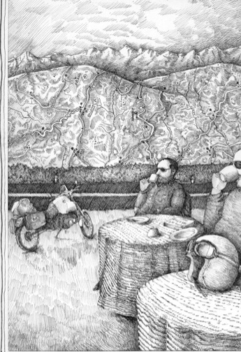 Una volta che innestiamo la prima, lasciando gentilmente la frizione, la moto comincia a borbottare nel linguaggio a noi familiare, inviando segnali in codice come per riattivare un abituale discorso interrotto con l’ultima sosta. Questo è un momento, anzi “il momento magico” per ogni motociclista, è proprio ora che sospendiamo il nostro essere pedestri, automobilisti, padri, mariti, impiegati, liberi professionisti, operai e tutto il resto e ci trasformiamo in motociclisti, moto-turisti, centauri, cafè-racer, tourers, easy-riders, bikers, motard… È esattamente in quest’attimo, quando la chiave gira e la voce del motore si libera, che quella cartella piena di quaderni del quotidiano vola via lontano…qualunque sia l’itinerario, la meta è già raggiunta!