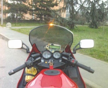 Il bordo del cupolino è all’altezza degli occhi, comunque entra nel campo visivo, «ci metto 2 LED» (diodi luminosi), pensai, per segnalare le frecce in funzione.