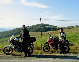 A spasso per le vie più remote dell’Appennino c’erano solo tre uomini e tre moto a contatto con la natura. Arrivi nel primo paesino e non ti viene nemmeno lontanamente il pensiero di fermarti… continui imperterrito per la tua strada e per le tue curve, perché in quel momento la strada è solo tua e nella tua testa c’è solo il pensiero di fare una curva o una staccata perfetta… ti senti il Valentino Rossi della situazione… guardi sempre avanti verso l’orizzonte e ti sembra tutto troppo vicino, perché non vorresti scendere mai… le uniche soste in 400 chilometri sono state per bisogni impellenti e per pranzare… e se nemmeno le bellezze architettoniche di una cittadina come Volterra ci hanno trattenuto per più di venti minuti vuol dire che la moto ti dà davvero molto…
