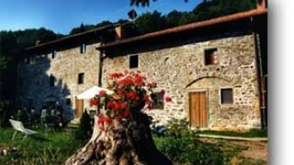 Una colonica di montagna in pietra grigia con un loggiato esterno, luogo ideale per sedere e farsi rapire dalla imponente visione dei monti che al tramonto, assorbendone l'arancio, ne proiettano l’ultima luce.